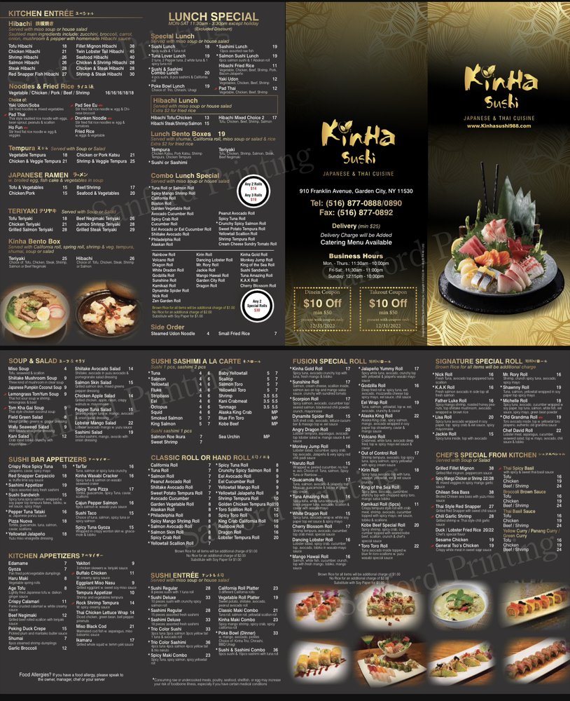 Kinha Sushi, nestled in Garden City, NY, offers a delightful fusion of Asian flavors with a touch of Japanese tradition. Boasting a diverse menu with vegan and vegetarian options, this restaurant caters to a wide range of preferences. The ambiance is charming, with bistro seating and a vibrant main dining room. The owner, Paula, adds a personal touch to every visit, ensuring top-notch service. Customers rave about the fresh and delicious dishes, from creative fusion plates to classic sushi rolls. The staff is friendly and attentive, making dining at Kinha Sushi a truly enjoyable experience. Whether you're looking for a quick lunch, happy hour drinks, or a leisurely dinner, Kinha Sushi promises a memorable culinary journey.